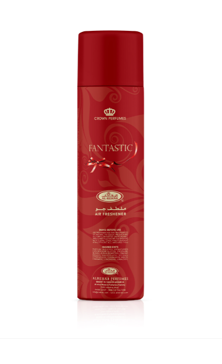 معطر جو فانتاستيك 300 مل معطر الجو الرائع الحل الأمثل لجو جذاب. معطر الجو هذا المعطر الفاخر المشبع بنفحات عطرية فرنسية مميزة، يحول أي مكان إلى واحة هادئة ويوفر أجواءً مطمئنة ومهدئة. مثالي للمنازل أو المكاتب أو أي منطقة تحتاج إلى لمسة منعشة، حيث يغلف معطر الهواء الرائع الأجواء المحيطة بك برائحة ناعمة وفاخرة تدوم طويلاً تاركاً كل غرفة برائحة رائعة. ارفع من مستوى بيئتك مع معطر الهواء فانتاستيك لأن كل نفس يجب أن يكون رائعاً!